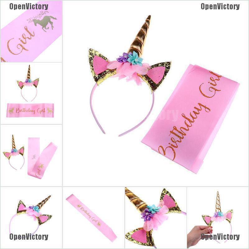 Cod Unicorn Birthday Girl Set Of Gold Glitter Unicorn Headband