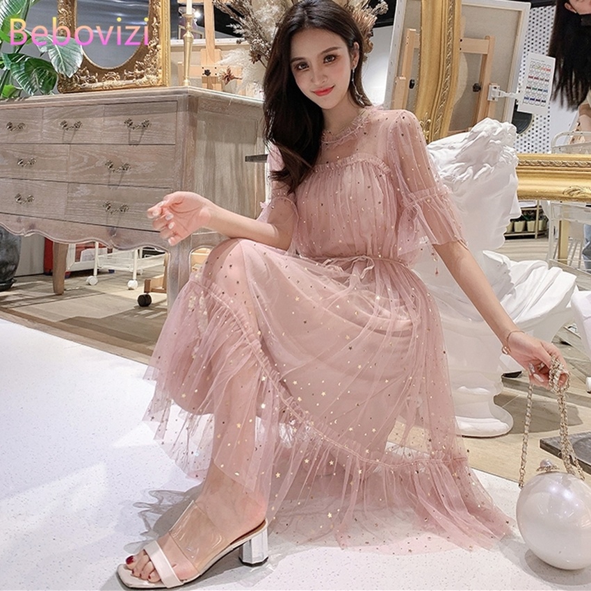 Rhinestone Woman Birthday Dress Sheer Mesh Sheer See Through Dress