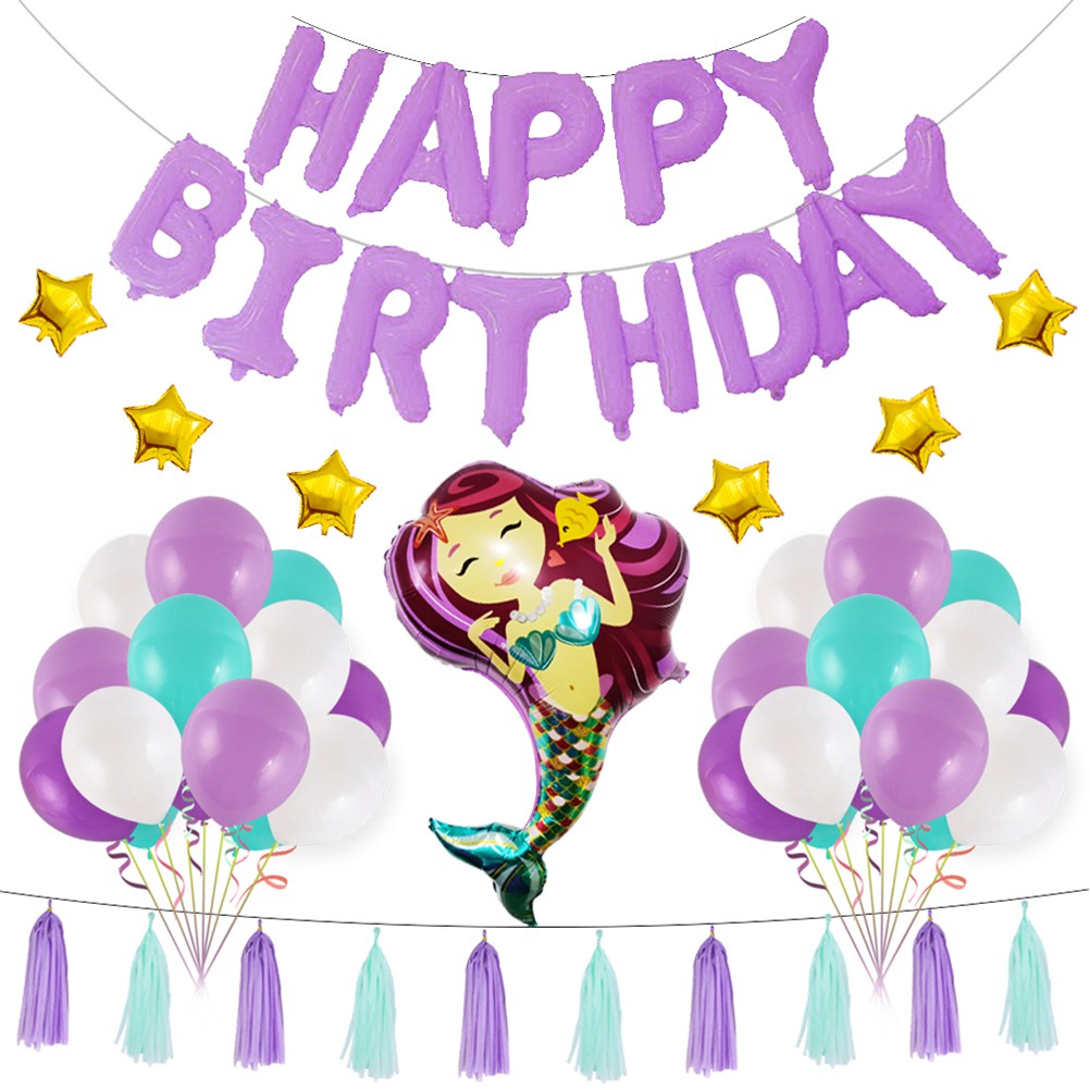 1 Set Mermaid Theme Birthday Decorations Party Foil Latex Balloons