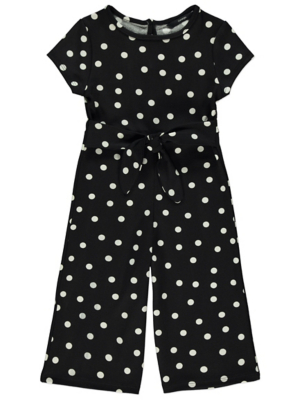 Black And White Spotty Tie Waist Culotte Jumpsuit Kids George